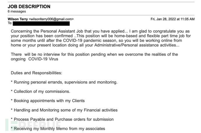 以轻松赚钱为由,黑客每天发送近 4000 封虚假求职邀约邮件