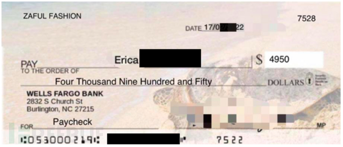 在这种情况下,一般受害者会认为他们收到了"工资",但这些票据都是不合法的,所以受害者将自己的钱寄给了黑客。
